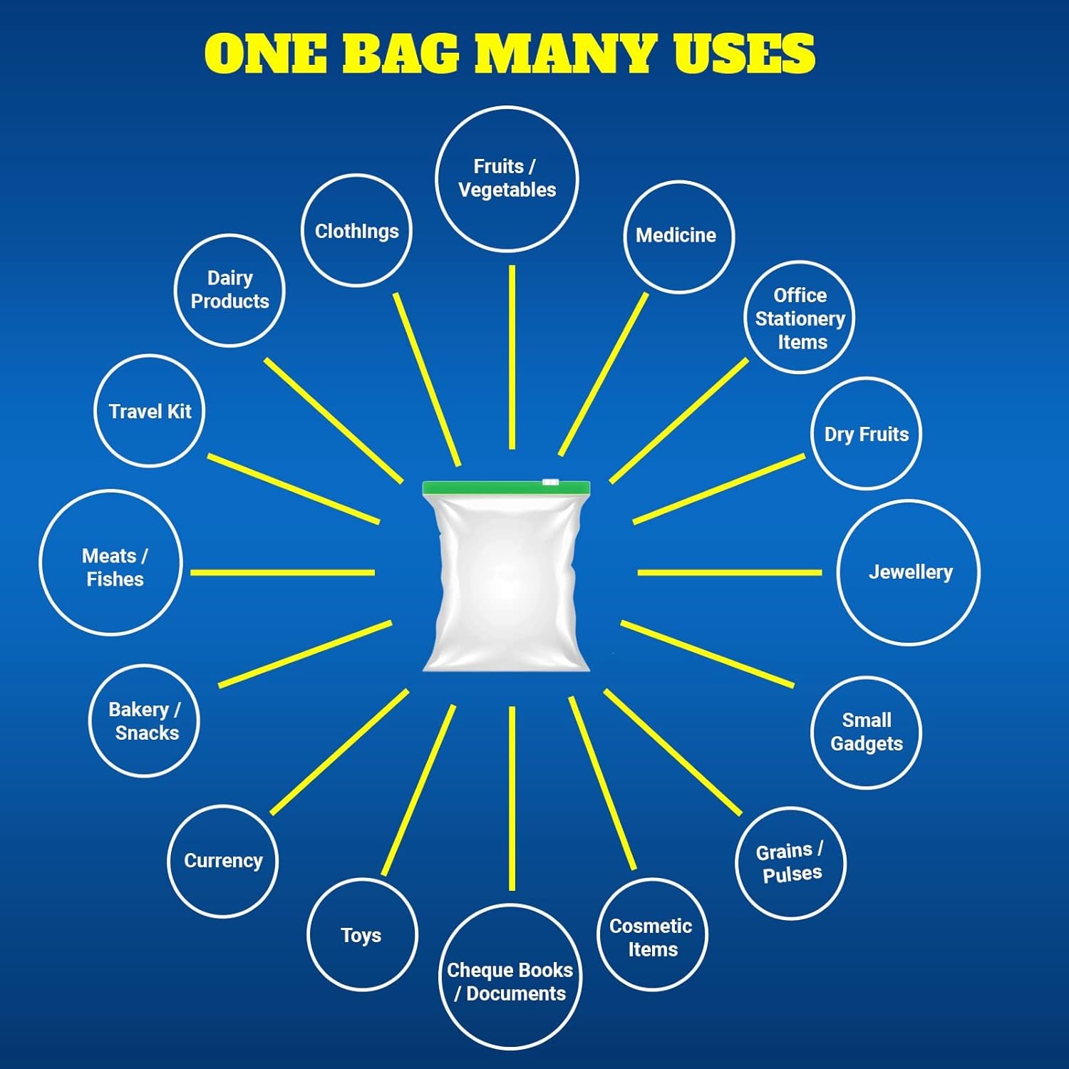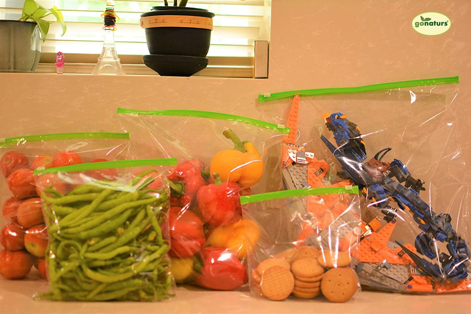 • GONATURS GREENZIPPER ZIPLOCK bags are useful for storing food items like Fruits, Vegetables, Meat, Diary Products, Pickles, Salads etc. Good Quality Plastics are Keep your food items pure and hygiene.